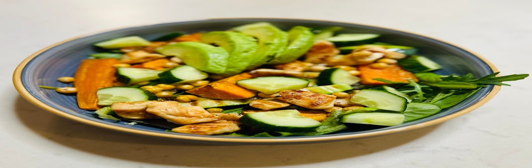 Geitenkaassalade met uitgebakken spekjes en avocado