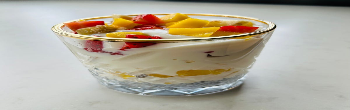 Trifle chiapudding met yoghurt en gepureerd fruit
