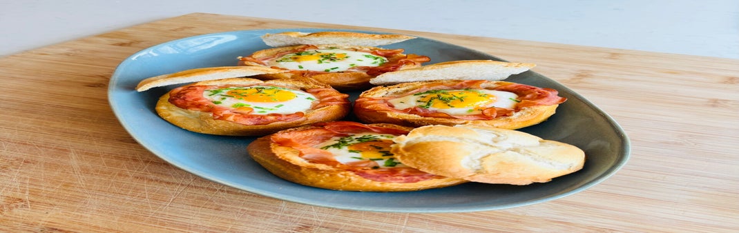 Kaiserbroodjes met rauwe ham, ei en bieslook