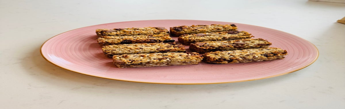 Chocoladekwark met havervlokken, kokos, gedroogde abrikoos en rozijnen