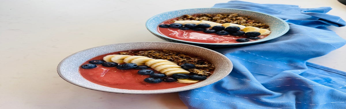 Smoothie mango, banaan, aardbei, citroensorbet, kokosyoghurt